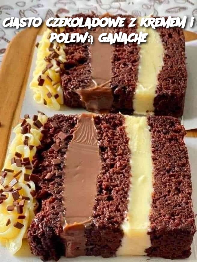 Ciasto czekoladowe z kremem i polewą ganache